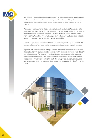 IMC operates a complete ban on corrupt practices. This includes any cases of “willful blindness”