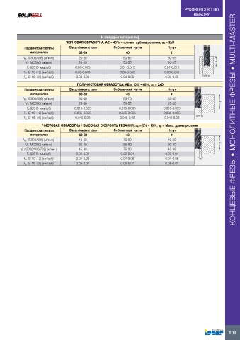 Fz (Ø 16 -20) (мм/зуб)   0.045-0.06             0.045-0.06            0.045-0.06      AE                 КОНЦЕВЫЕ ФРЕЗЫ • МОНОЛИТНЫЕ ФРЕЗЫ • MULTI-MASTER