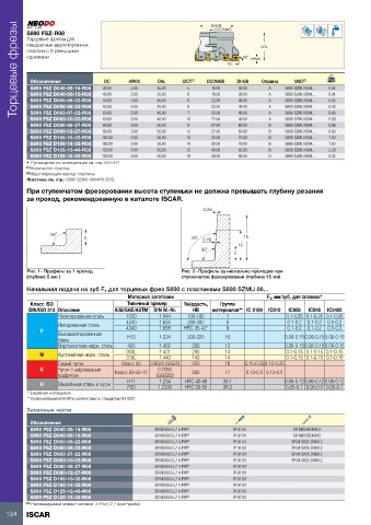 Начальная подача на зуб Fz для торцевых фрез S890 с пластинами S890 SZMU 08...