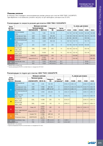 Рекомендации по скорости резания для пластин H690 TNKX 100504PNTR                                            Фрезерные пластины