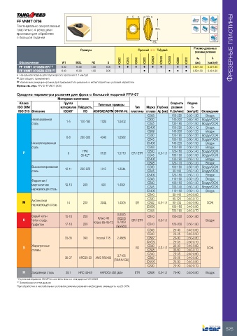 ISO 513 Описание       ISCAR*    HB   AISI/SAE/ASTM DIN W.-Nr.  пластины сплава Ap [мм] Vc [м/мин]  [мм/зуб]  Охлаждение