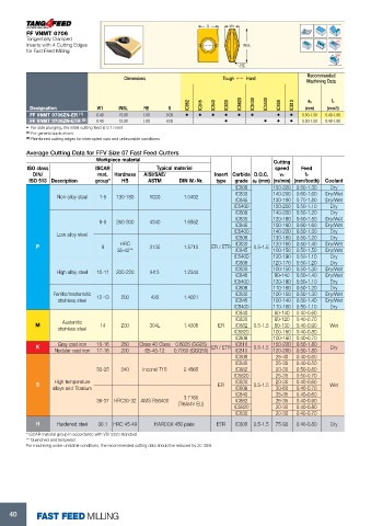 Average Cutting Data for FFV Size 07 Fast Feed Cutters