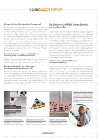 NEWSWie legen sie fest, welches die richtigen Werkzeuge sind? Wir entwickeln ja hier in Deutschland nicht selbst, das %u00fcbernimmt unser Stammhaus. Wir stehen aber im t%u00e4glichen Austausch mit den Kollegen und sind im Grunde deren Augen und Ohren im Markt. Nat%u00fcrlich sehen wir auch, wenn sich die Anforderungen der Kunden ver%u00e4ndern. Das geben wir an die Kollegen weiter, und die entwickeln die entsprechenden Produkte. Was auch sehr oft passiert, ist: Impulse kommen von den Sonderwerkzeugen. Manchmal l%u00e4sst sich eine Anwendung bei einem Kunden nur mit einer Sonderl%u00f6sung realisieren. Wenn wir sehen, dass diese im Markt ein hohes Potenzial hat, dann entsteht daraus auch mal ein Standardwerkzeug. Ein sch%u00f6nes Beispiel daf%u00fcr ist CUTVGRIP, unsere multifunktionale schmale Wendeplatte in V-Form zum Au%u00dfendrehen, Profilieren und Hinterschneiden. Diese haben wir bei Kunden in Deutschland als Sonderl%u00f6sung angeboten und verkaufen sie jetzt in sehr gro%u00dfen St%u00fcckzahlen.Also sind die Kunden sozusagen zumindest indirekt an Entwicklungen der neuen Werkzeuge beteiligt?Absolut! Es w%u00e4re auch unsinnig, am Kunden vorbei zu entwickeln und etwas auf den Markt zu bringen, von dem wir nur glauben, dass es daf%u00fcr einen Bedarf gibt. Die Kunden treiben unsere Innovation. Sie sagten vorhin, dass Sie eine Ver%u00e4nderung der Anforderungen feststellen. Was %u00e4ndert sich?Wir sehen eine starke Ver%u00e4nderung in den Werkst%u00fcckstoffen und in der Art, wie unsere Kunden diese bearbeiten. Fertigungsverfahren wieNear net shape und 3D-Druck, aber auch das verbesserte Schmieden von Bauteilen f%u00fchren beispielswiese zu immer geringeren Aufma%u00dfen. Zudem nimmt die Hartbearbeitung bei unseren Kunden zu, die mit Hartmetallwerkzeugen so nicht mehr ohne weiteres m%u00f6glich ist. Deshalb nutzen wir unser verst%u00e4rktes Engagement auch bei den harten Schneidstoffen, zum Beispiel Keramik.Sind die Werkzeuge der LOGIQUICK-Kampagne f%u00fcr aktuelle Anforderungen konzipiert oder haben Sie damit die n%u00e4chsten zwei, drei Jahre im Blick?Wir schauen uns auch immer die Entwicklung am Markt an. Ein sch%u00f6nes Beispiel daf%u00fcr ist der immer st%u00e4rkere Einsatz von Multitasking-Maschinen, also der Maschinen-Generation der Zukunft. Es gibt immer eine Challenge zwischen Maschinen- und Werkzeugentwicklung. Wir sehen, dass unsere Kunden Bauteil-Bearbeitungen in einer Aufspannung auf ihren Maschinen abbilden wollen. Hier haben wir einen gro%u00dfen Vorteil, weil wir verst%u00e4rkt mit der y-Achse auf den Maschinen arbeiten k%u00f6nnen. In der neuen Kampagne finden sich viele Werkzeuge, die wir genau daf%u00fcr konzipiert haben %u2013 um Multitasking-Maschinen %u00fcber die y-Achse und %u00fcber multidirektionales Drehen zu bedienen. Das ist im Grunde eine Anforderung, die heute bereits in geringerem Ma%u00df am Markt vorhanden ist. Wir sind uns sicher, dass wir in den kommenden Jahren ein starkes Wachstum sehen werden. Wir erwarten, dass unsere Kunden in diese Technologie entwickeln werden, um %u2013 und da spielt wieder der Fachkr%u00e4ftemangel eine gro%u00dfe Rolle %u2013 m%u00f6glichst die Komplettbearbeitung auf einer Maschine darzustellen.Welche Erwartungen kn%u00fcpft ISCAR an eine neue Werkezugkampagne?Wie alle Werkzeughersteller am Markt sehen auch wir, dass der Automobil-Bereich an Wichtigkeit verliert. Deshalb schauen wir uns an, auf welchen M%u00e4rkten wir bisher noch nicht das volle Potenzial ausgesch%u00f6pft haben. F%u00fcr uns geh%u00f6rt da unter anderem die Miniaturbearbeitung dazu. Wir hatten schon immer gute L%u00f6sungen f%u00fcr Bearbeitungen auf Langdrehern im Portfolio. Allerdings waren wir nicht die erste Adresse f%u00fcr unsere Kunden, um eine Komplettausr%u00fcstung solcher Maschinen vorzunehmen. Viele unserer Entwicklungen zielen genau in diese Richtung. Heute sind wir in der Lage, einen Langendreher genau daf%u00fcr komplett von A bis Z auszur%u00fcsten und auch den Kunden einen Vorteil gegen%u00fcber herk%u00f6mmlichen Systemen zu bieten.Vom Sonder- zum Standardwerkezug: CUTVGRIP, die multifunktionale schmale Wendeplatte in V-Form zum Au%u00dfendrehen, Profilieren und Hinterschneiden. Der spezielle SUMOCHAM-Bohrkopf f%u00fcr die Bearbeitung von Stahltr%u00e4gern verringert die L%u00e4rmbelastung bei diesem Prozess deutlich.Erich Timons: %u201e%u00dcberall da, wo wir in derVergangenheit die Segel streichen mussten, weil es einfach nicht ging %u2013 auch f%u00fcr andere nicht %u2013 wo wir Probleme immer irgendwie umgehen mussten, haben wir jetzt Werkzeuge, die genau diese Aufgaben l%u00f6sen.%u201cDie sechsschneidigen LOGIC6TURNWendeschneidplatte zum Drehen passt auf einen normalen Halter f%u00fcr ISOPlatten.5