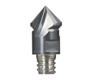 为带三个有效齿的可换头式硬质合金刀头,用于上下倒角加工