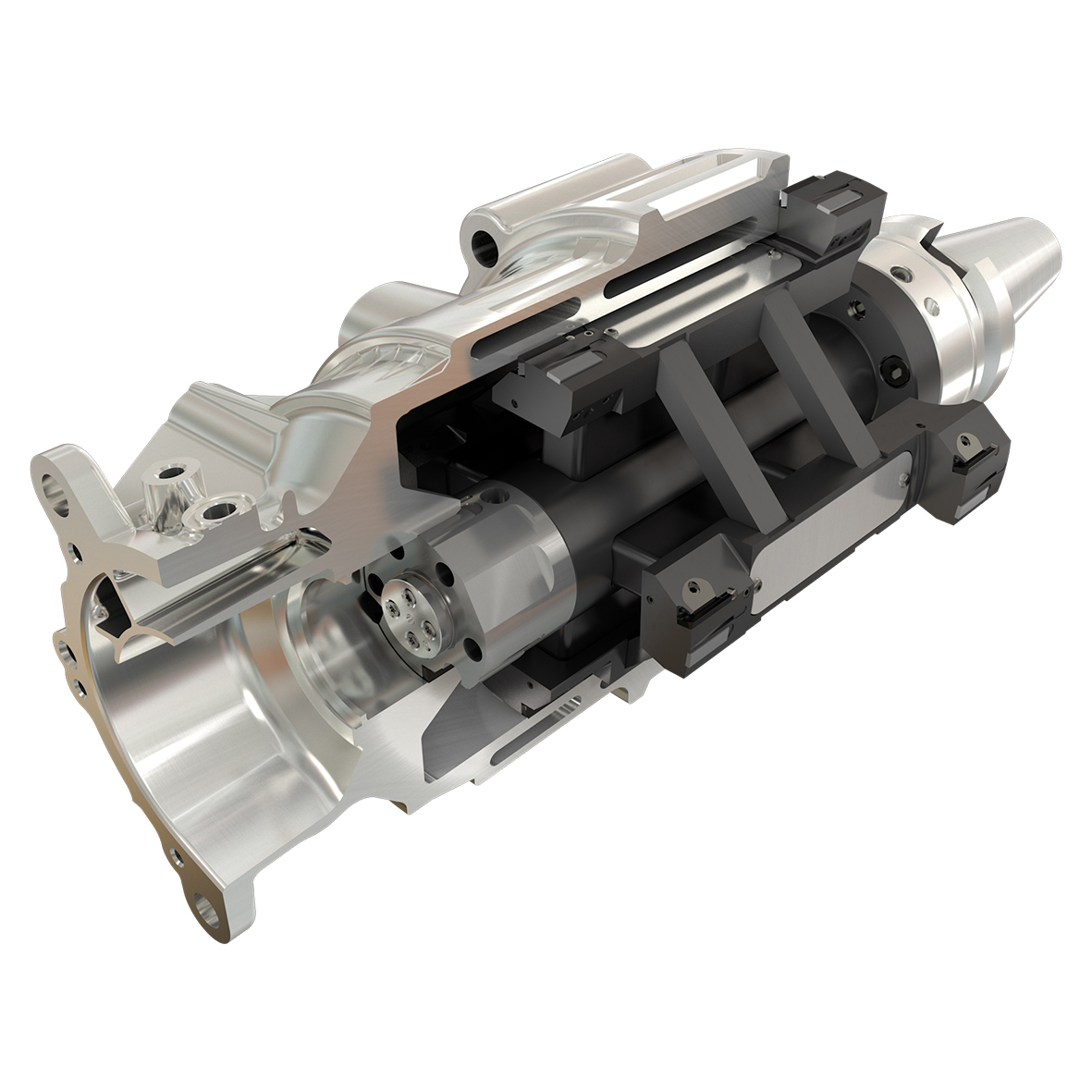 Nejnáročnější operací při obrábění hliníkové skříně statoru je vyvrtávání a vystružování hlavního průměru. Díky