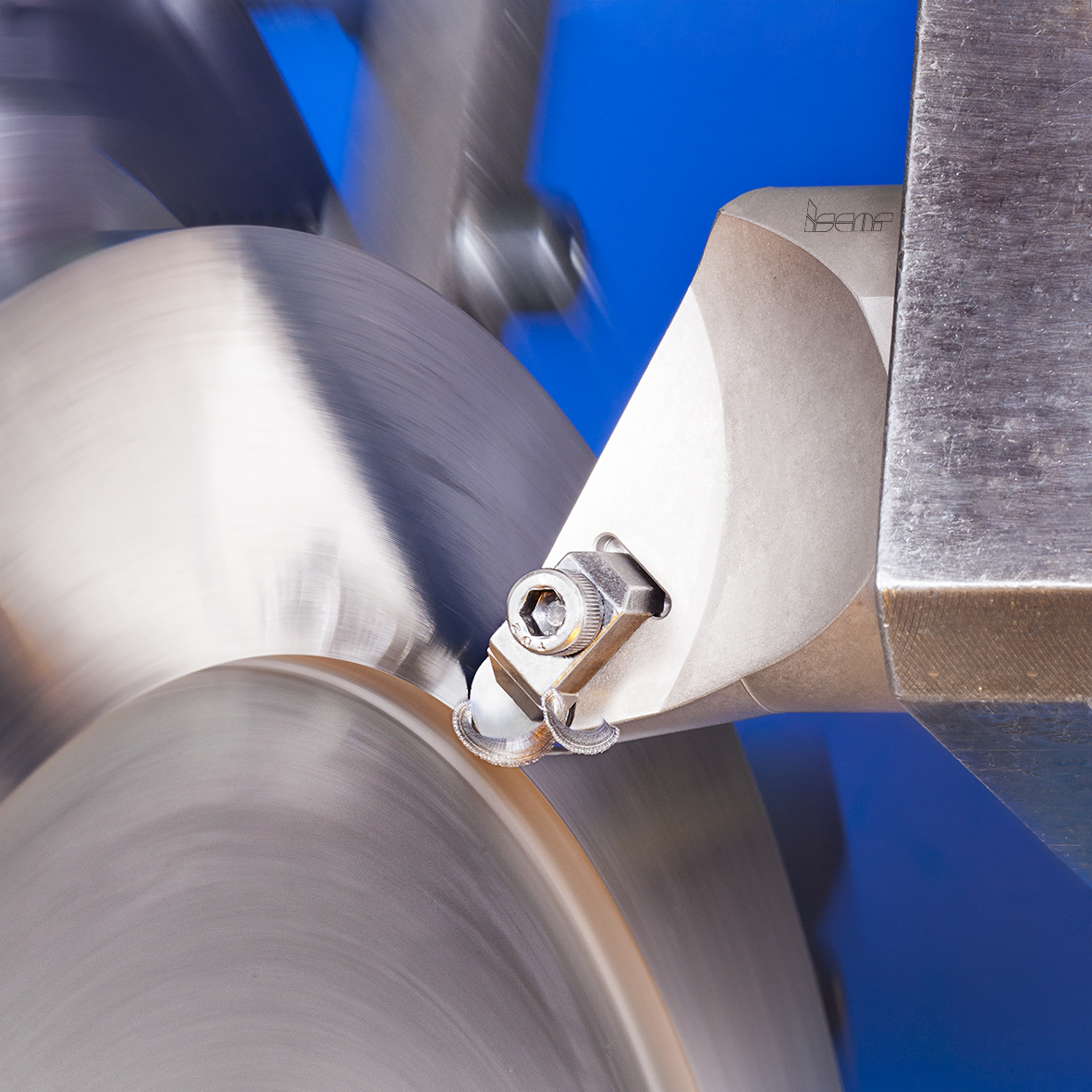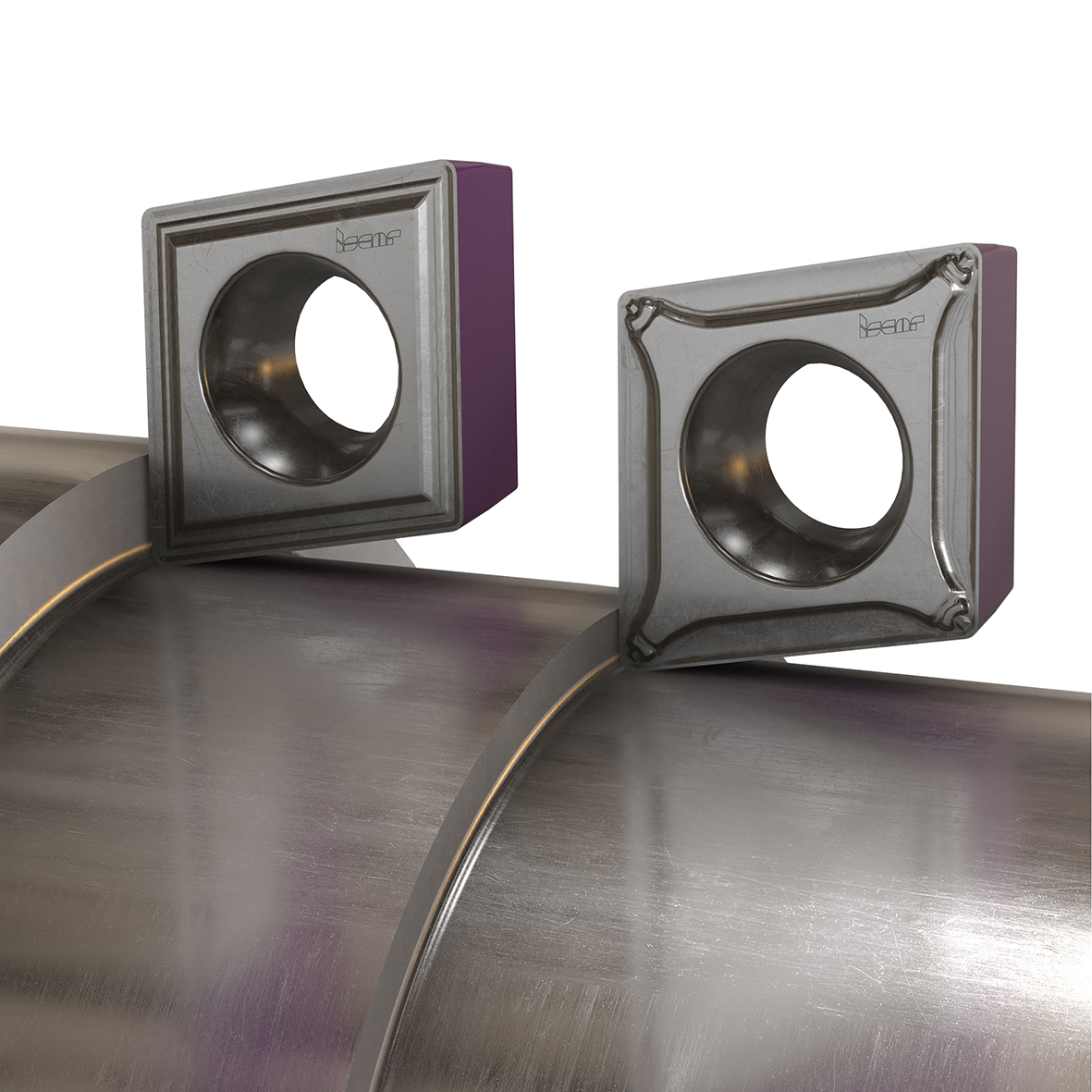 Nejnovější typy utvařečů F3M a F3P, pro ISO standardní soustružnické destičky, jsou určeny speciálně pro obrábění austenitické nerez oceli a superslitin (obr. 4). Geometrie s pozitivním úhlem čela snižuje řeznou sílu a zajišťuje klidný řez, zatímco utvařeč na čele destičky zajišťuje bezproblémovou tvorbu a lámání třísky.